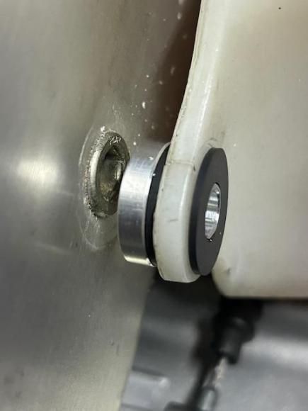 貴重なオイルタンクのクラック防止用カラーセット 経年変化による劣化と締め過ぎによるタンクのクラックが多く その防止の為のカラーKIT タンク取り付け後部に穴を8πの長穴に加工する必要があります。 丸棒ヤスリやリューターにて加工してください。 フレーム側にカラーを取り付け、ラバーでタンクを挟み込むようにして 取り付けしてください。